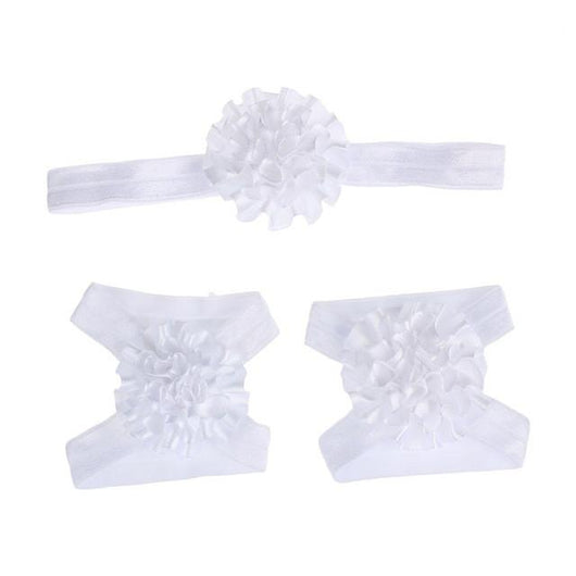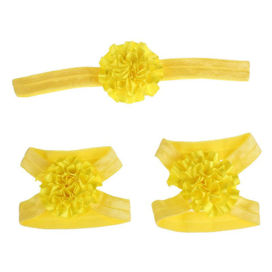 2017 3pcs Cute Foot Flower Barefoot Sandals+Headband Set Solid Color Elastic Hair Bands Cute Kids Headbands #LSW