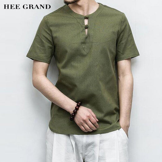 HEE GRAND Men Casual T- Shirts 2017 New Arrival Cotton Linen Material Chinese Traditional Button Decoration Men Top Tees MTS2564