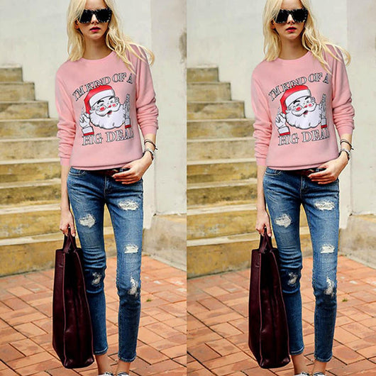 Women Christmas Print Long Sleeve Pullover Sweatshirt Blouse Shirt Clothes