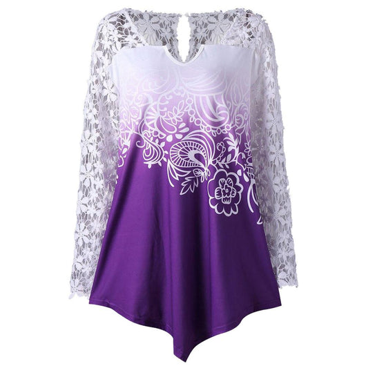 Womens Printing Lace Shirt Long Sleeve Shirt Casual Tops Ladies Blouse